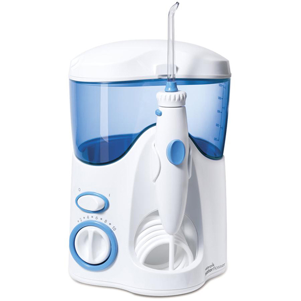 Improves dental hygiene and is clinically proven to be up to 93% more effective than dental floss at improving gum health, Removes bacteria deep between teeth and below the gumline, Massages and stimulates gums, Works with water or your favorite mouthwash, Leaves a clean, fresh sensation, Advanced pressure control system with 10 pressure settings ranging from 5 to 90 psi, Contemporary, compact design is 20% smaller than previous models, Quietest operation ever, Unique reservoir lid with tip compartment, Reservoir capacity of 600 mL