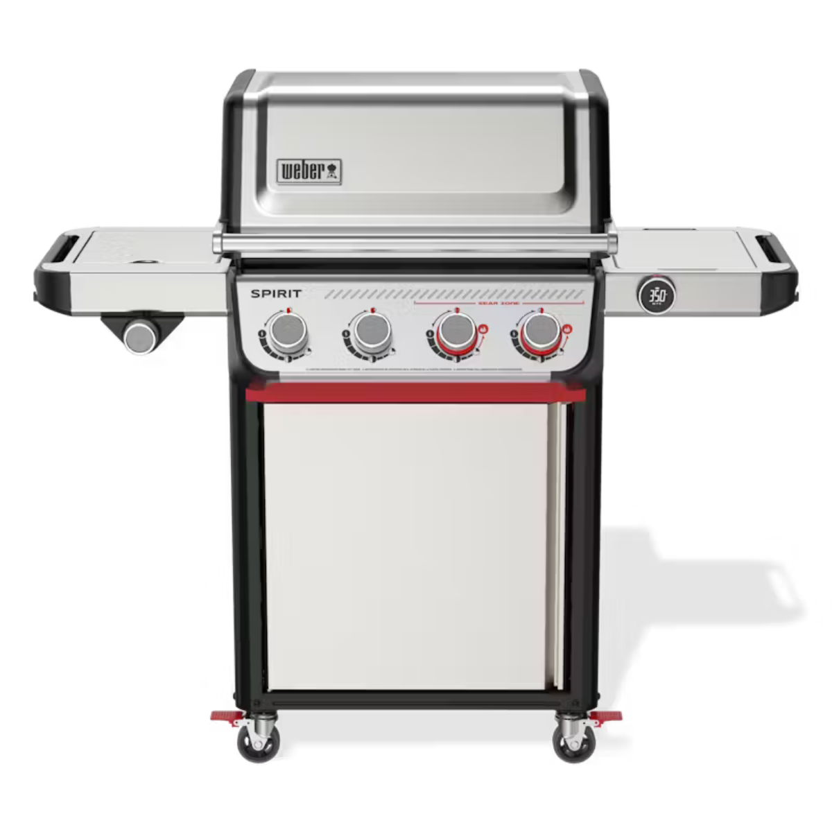 Grill food that tastes better than ever on the reinvented 4-burner, stainless steel Spirit® SPX-435 Smart Gas Grill with Sear Zone, Wi-Fi® enabled digital thermometer, and side burner. Never undercook or overcook your food again with the Wi-Fi® enabled digital thermometer, which comes with one wired food probe. Pair it with the Weber Connect® App to monitor remotely and get alerts on your smartphone when the grill is preheated and when your food is ready to flip. Create bold, flavorful sear marks on meat, fish, and vegetables with 7mm stainless steel cooking grates and two red Boost Burner knobs that unleash 40% more power in the Sear Zone. Ignite each individual burner easily with one hand with Snap-Jet Ignition and control the heat precisely with a full range of temperatures from high to low and everything in between. Make the most of your space by adding a variety of Weber Works™ accessories that drop into the right-side table or snap onto both side rails.* Transform your grill into a griddle with a rust-resistant griddle insert or turn your grill into a pizza oven, wok, Dutch oven, and more by adding a Weber Crafted® frame kit and custom-fit grillware.*
