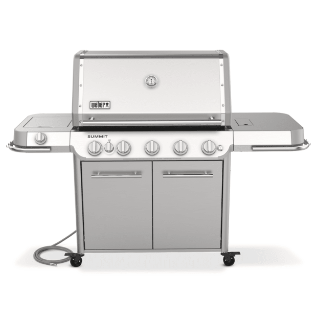 Step up to the Summit grill, the top-of-the-line Weber gas grill reinvented with features that expand your outdoor cooking techniques and enable you to entertain at a higher level. Grill restaurant-quality steaks with the new top-down infrared broiler that directs blazing heat onto the top of food, producing an edge-to-edge caramelized crust that seals in flavor. Light up the stainless-steel smoker box to give your food a low-and-slow, smoky boost and break out of your routine with the integrated rotisserie. This grill is equipped with the WEBER CRAFTED cooking grates and frame kit that lets you transform your grill into a griddle, pizza oven, wok, and more with a variety of custom-fit grillware (sold separate). Bring the kitchen outside and create delicious food that makes every gathering memorable.
