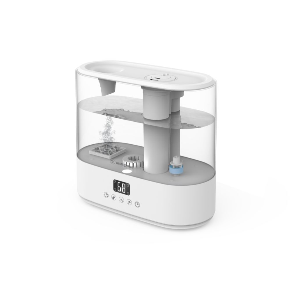The Westinghouse Antimicrobial Air Humidifier is the perfect way to improve your indoor air quality and comfort. This innovative humidifier uses an electrolytic module which generates hydroxyl radicals to remove harmful bacteria and germs from the air, while also adding moisture to help relieve dry skin, nasal congestion, and other common cold and flu symptoms. Breathe easy and live comfortably with the Westinghouse Antimicrobial Air Humidifier. Order yours today!.
