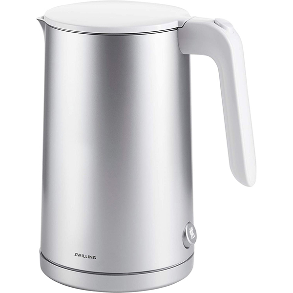 ZWILLING Enfinigy kitchen appliances combine contemporary design and German Engineering for beautifully functional appliances that complement the modern kitchen. This digital kettle features a double wall design for a stay-cool exterior. Six temperature settings heats water to the perfect temperature for brewing coffee, for making different varieties of tea, for warming baby bottles and more